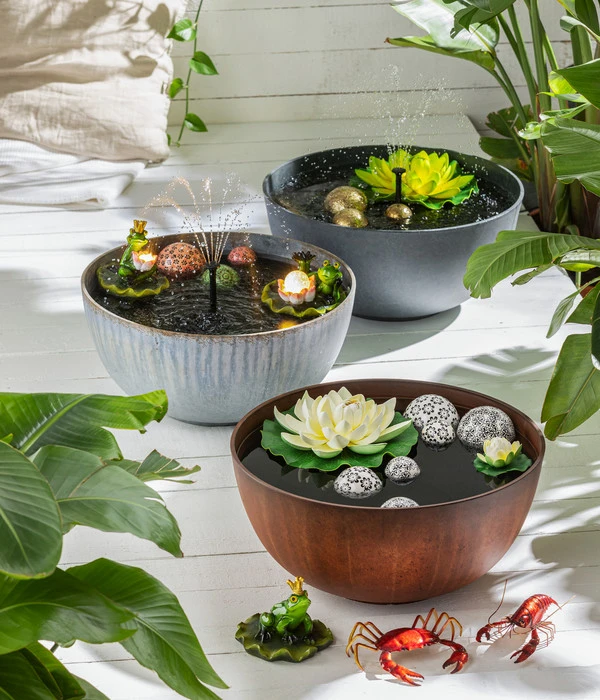 Das Esotec Solarpumpensystem Rimini S ist ein steckerfertiges Teichpumpen System und besteht aus folgenden Teilen: 1 hochwertigen Solarmodul mit Alurahmen und Erdspieß, 1 Tauchpumpe im Kunststoffgehäuse mit 5 m Anschlussschlauch, 4 Steigrohre und 4 Wasserdüsen. Und so geht’s: Stecken Sie die Steigrohre auf die Pumpe und setzen Sie dann einen der gewünschten Sprinkler auf. Dann stellen Sie die Pumpe im Teich auf einige Steine, am besten nicht zu nah am Teichrand, da dort die Gefahr besteht, dass zu viel Schmutz angesaugt wird. Dann noch die Pumpe mit dem Solarmodul verbinden, das Solarmodul an einen sonnigen, schattenfreien Platz stellen und los geht’s! Sie werden selbst überrascht sein, wie schnell und unkompliziert der Anschluss dieses Teichpumpensystems ist und wie viel Spaß Sie an einem hübschen Wasserspeier oder einem anderen Wasserspiel haben werden.