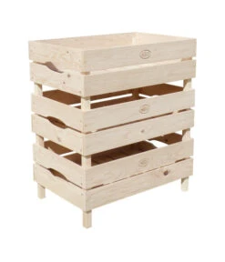 Praktischerweise kommen die Stapelkisten gleich in einem 3er-Set, in robuster und hochwertiger Verarbeitung. Dank der vier Füße auf der Unterseite der Kisten steht die Konstruktion stabil. Gute Luftzufuhr gewährt Ihrem Obst und Gemüse die gewünschte Frische und längere Haltbarkeit. Die Holzkisten lassen sich dank der seitlichen Griffe jederzeit bequem aufeinanderstapeln und auseinandernehmen. So können Sie beispielsweise auch große Früchte wie Melonen problemlos lagern, indem Sie Ihre Holzkisten einzeln nebeneinander verwenden. Der beste Platz dafür ist ein kühler dunkler Ort, zum Beispiel der Keller. Bestellen Sie Ihre HABAU Obst- und Gemüsekisten gleich jetzt und überzeugen Sie sich selbst!
