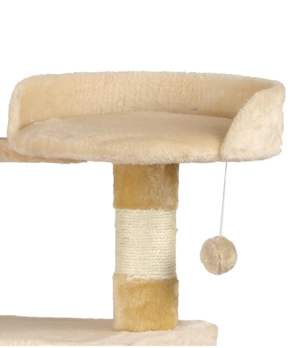Egal ob Ihre Katze schlafen, relaxen oder toben will – mit diesem schicken Kratzbaum Holiday junior von Silvio Design kann Ihr Stubentiger alles machen. Zum Entspannen lädt die bequeme Hängematte ein. Die Kuschelhöhle bietet einen tollen Rückzugsort, falls sich Ihr Tiger verstecken oder in Ruhe schlafen möchte. Aber auch die diversen Liegeflächen, eine sogar mit Lehne und eine als kuschelige mit Plüsch bezogene Schlafmulde, dienen Ihrer Katze perfekt als Beobachtungsposten oder zum Relaxen. Für Unterhaltung sorgen das an den Liegeflächen angebrachte Spielseil und die Spielkugel. Alle Liegemöglichkeiten und die Höhle an diesem außergewöhnlichen Kratzbaum Holiday junior von Silvio Design sind mit weichem Plüsch ausgestattet und machen diesen noch kuscheliger. Durch die vielen mit Sisal umwickelten Holme und dem geschwungenen Kratzbrett, ist für die optimale Krallenpflege Ihrer Katze gesorgt und schützt Ihre Einrichtung vor den natürlichen Kratzgewohnheiten. Seine Standfestigkeit erhält der Kratzbaum zusätzlich durch die große Bodenplatte. Ihr Stubentiger wird sich auf diesem Kratzbaum sichtlich wohl fühlen. Gönnen Sie ihm diesen Luxus.